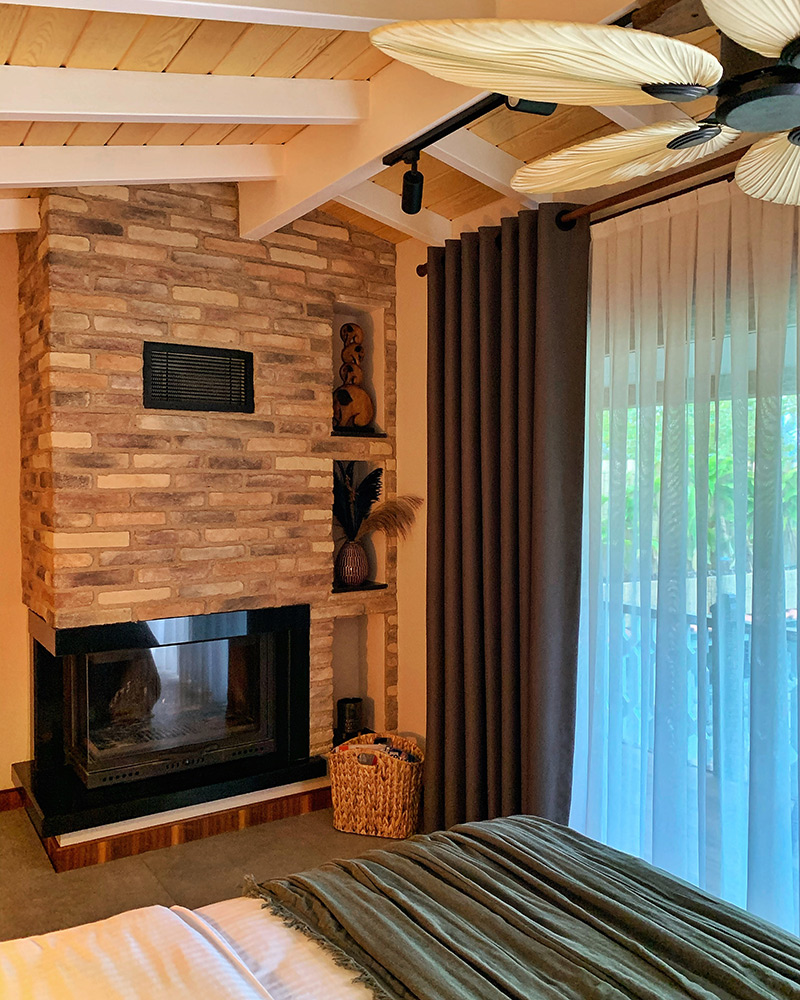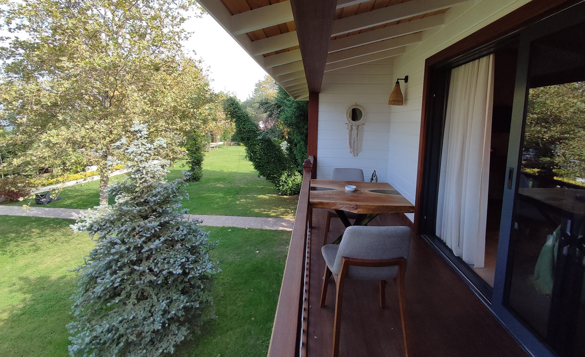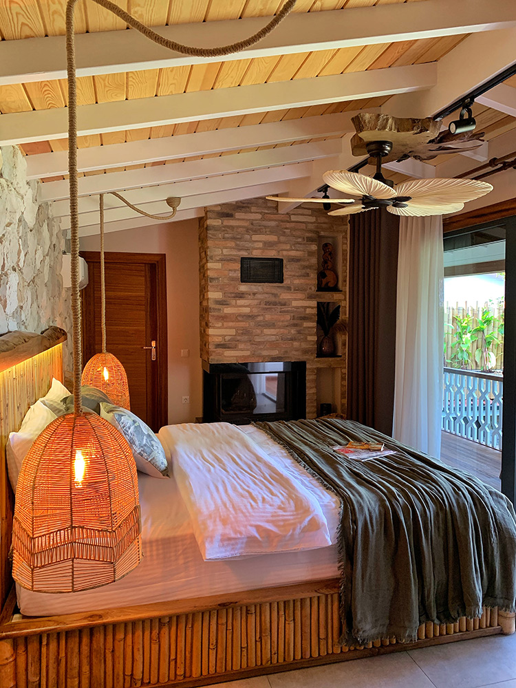 Yeşil ve mavinin güzelliklerini sizlere aynı anda sunan muhteşem bir manzara eşliğinde jakuzide yorgunluğunuzu atabilir, şömine karşısında yanan odun ateşinin çıtırtısıyla huzur dolu dakikalar geçirebilirsiniz.