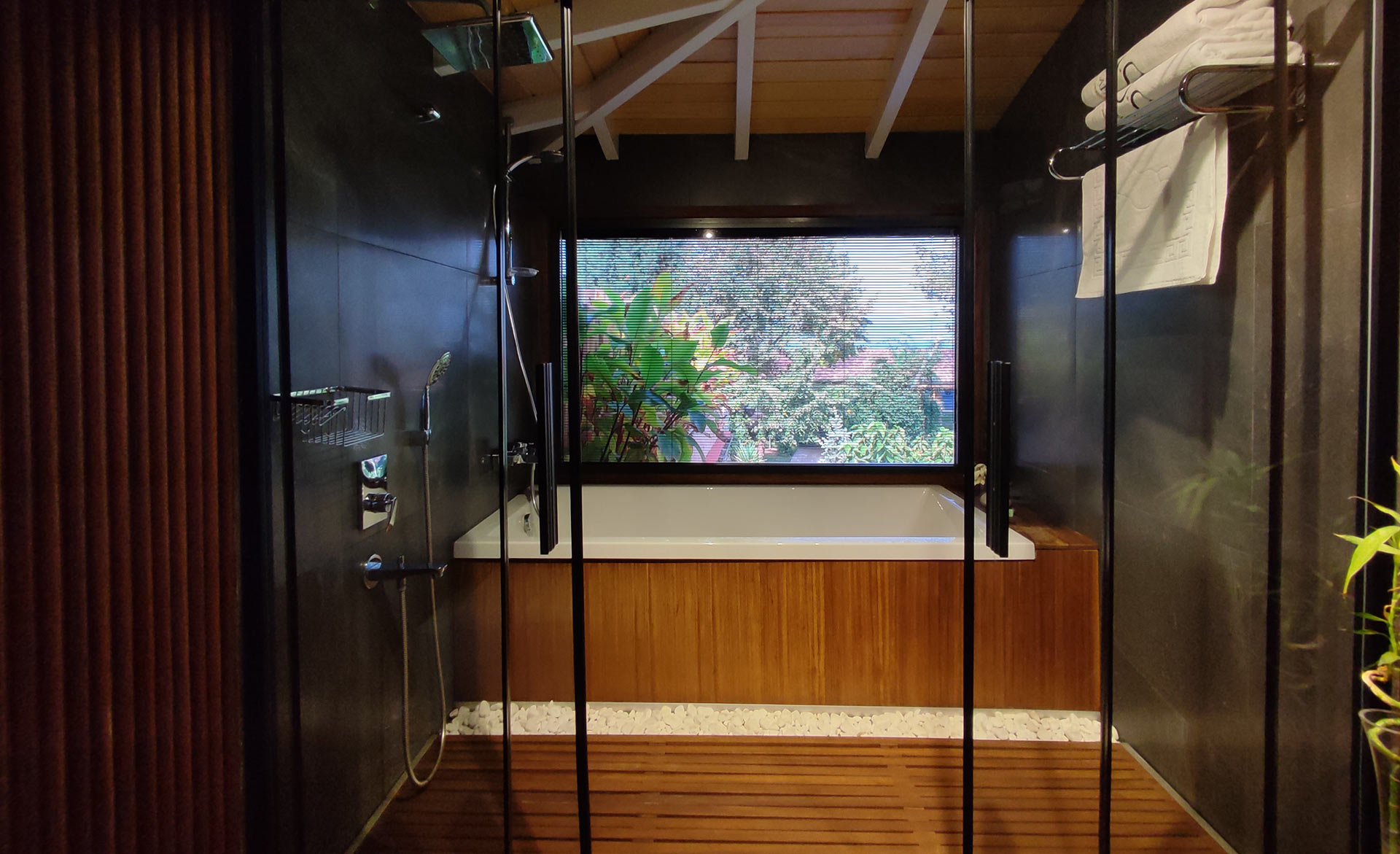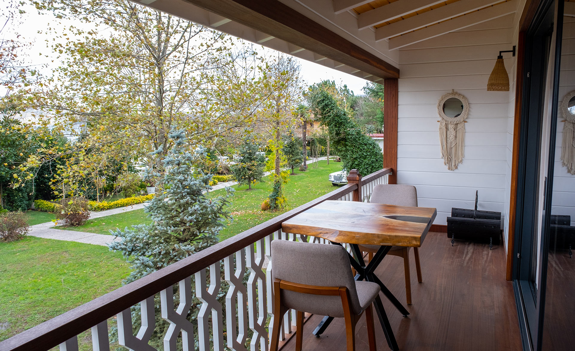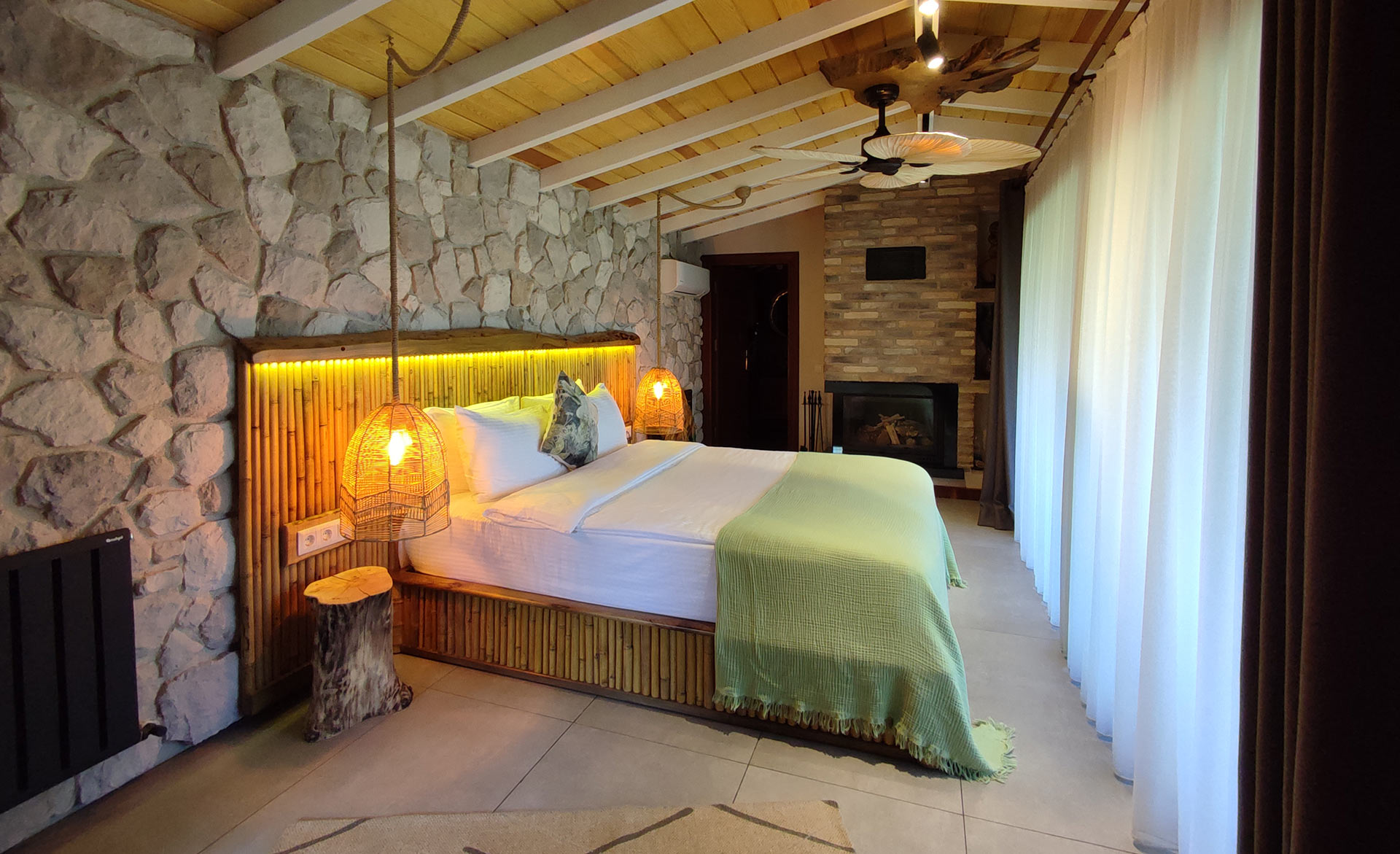 Yeşil ve mavinin güzelliklerini sizlere aynı anda sunan muhteşem bir manzara eşliğinde jakuzide yorgunluğunuzu atabilir, şömine karşısında yanan odun ateşinin çıtırtısıyla huzur dolu dakikalar geçirebilirsiniz.